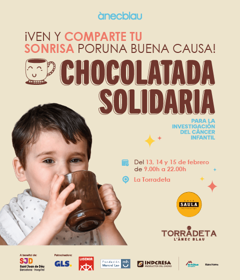 Un año más, La Torradeta se suma a la Chocolatada Solidaria para apoyar la investigación del cáncer infantil. Los días 13, 14 y 15 de febrero, de 9 a 22 h, podrás colaborar disfrutando de un delicioso chocolate caliente por solo 1 €. Una iniciativa solidaria que invita a compartir, disfrutar y aportar nuestro granito […]