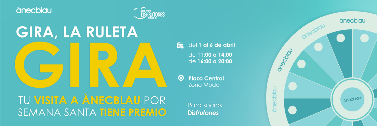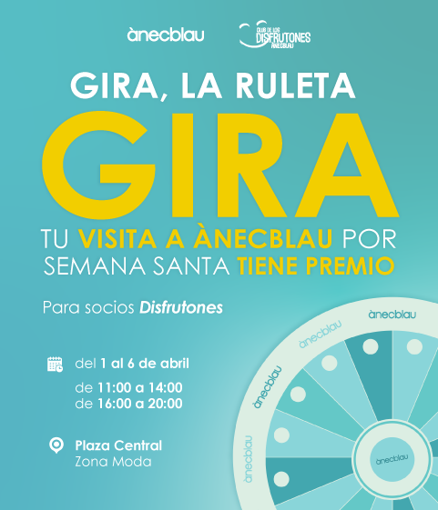 Ven a ànecblau y participa en nuestra ruleta. ¡Tu visita tiene premio seguro! Solo tienes que ser socio del Club de los Disfrutones de ànecblau para poder probar suerte. ¡Te esperamos!